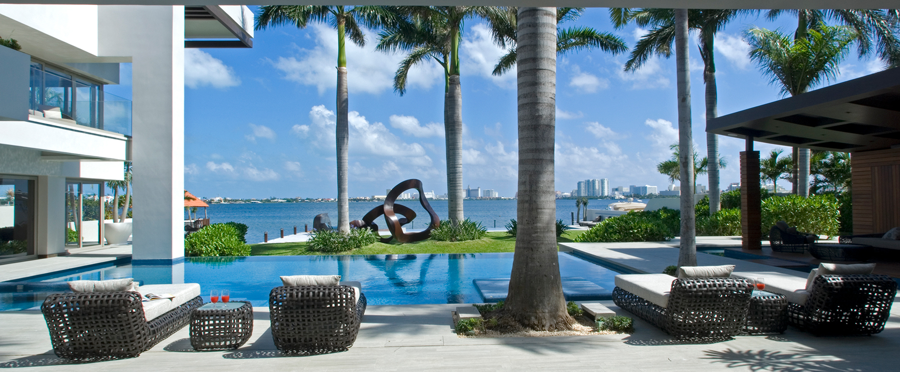 Es una propiedad localizada en Isla Dorada, una comunidad privada enclavada en el corazón de la zona hotelera de Cancún. La casa se ubica en un terreno en un acre con espectaculares vistas a la Laguna Bojórquez y está construida en 2 pisos, consta de 1650.00 m2 de construcción, con 4 recamaras, 7 ½ baños, un gimnasio, habitaciones para el staff de la casa, sala familiar, sala principal, sala de entretenimiento, comedor, cocina expuesta, cocina industrial, cuarto de vapor, terrazas y cochera para 7 automóviles.